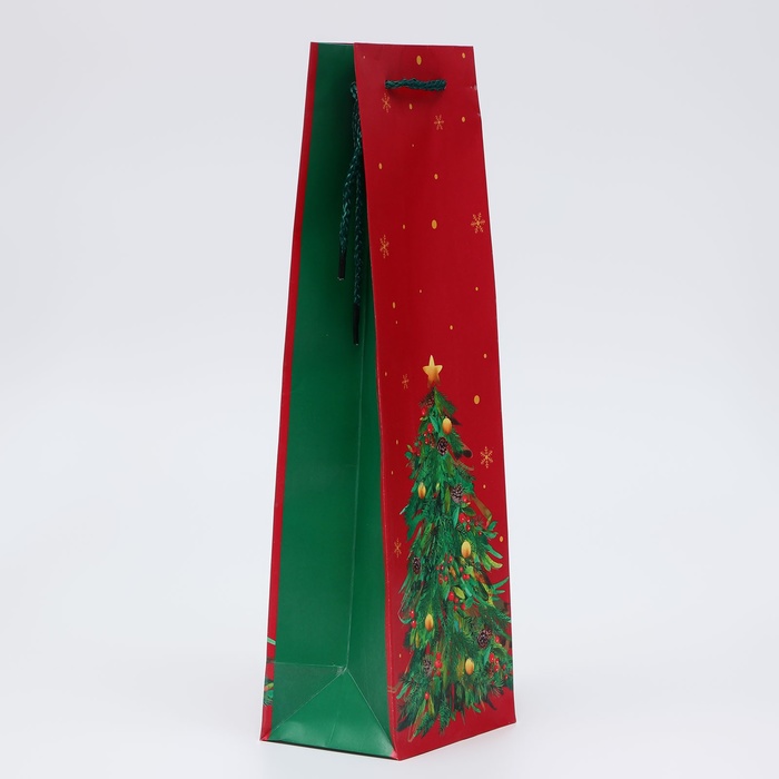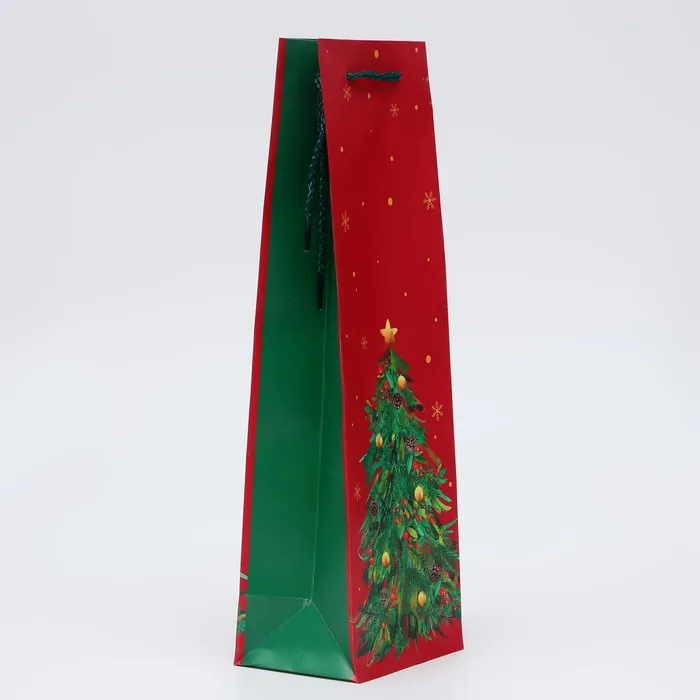Пакет подарочный новогодний под бутылку, упаковка «Ёлка», 12×36×8.5 см — Характеристики