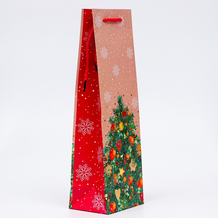 Пакет подарочный новогодний под бутылку, упаковка «Красивая Ёлка», 12×36×8.5 см — Характеристики