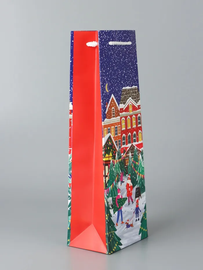 Подарочный пакет новогодний — идеальный выбор для упаковки бутылки.