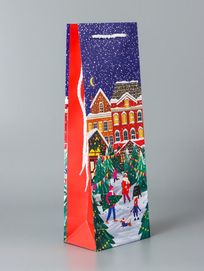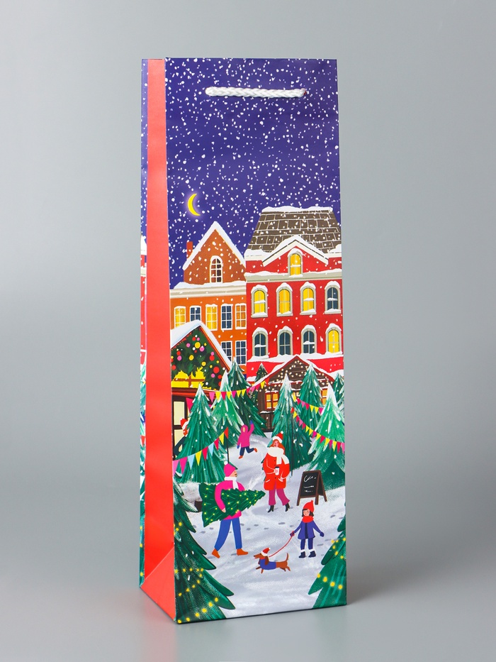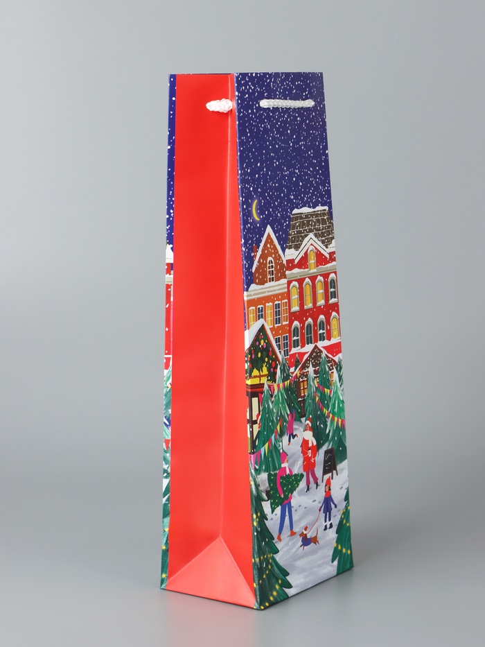Пакет подарочный новогодний под бутылку, упаковка «Праздник в городе», 12×36×8.5 см — Характеристики