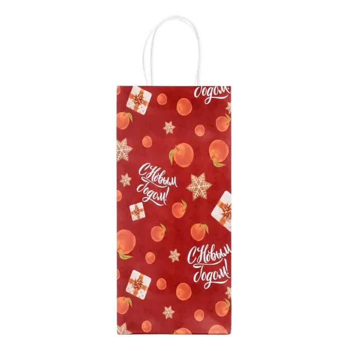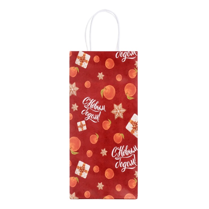 Пакет подарочный новогодний под бутылку, упаковка «С Новым годом!», 25×12×33 см — Характеристики