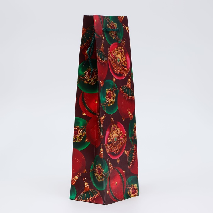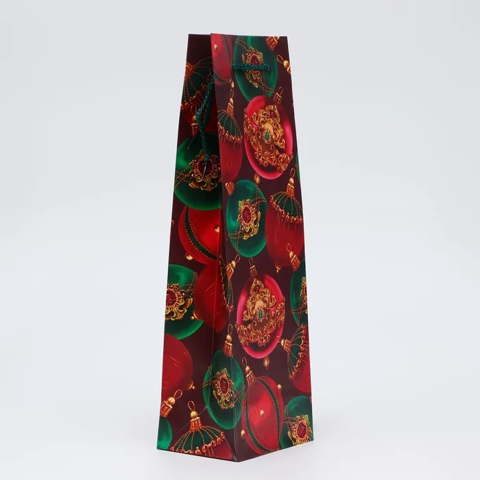 Пакет подарочный новогодний под бутылку, упаковка «Шары», 12×36×8.5 см — Характеристики