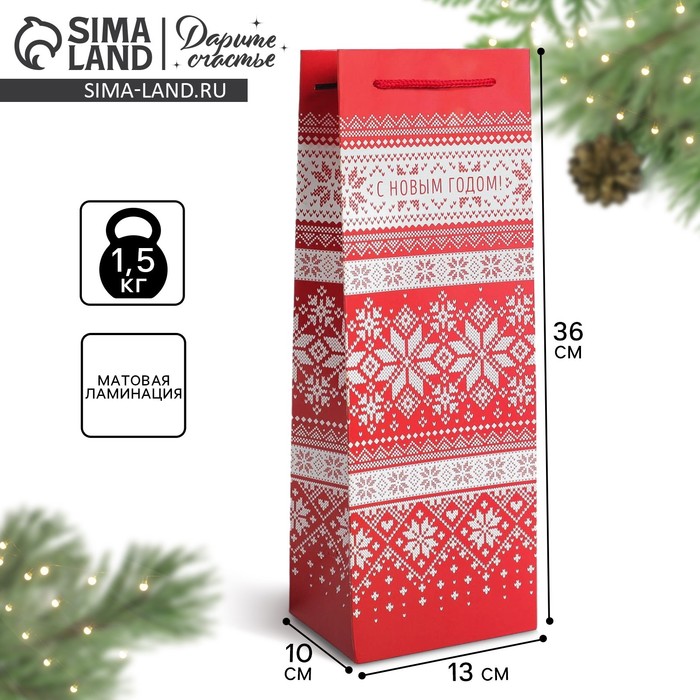 Пакет под бутылку новогодний имеет размеры 12 см в длину, 36 см в ширину и 8,5 см в высоту. Он выполнен из высококачественного материала, который обеспечивает его прочность и долговечность.