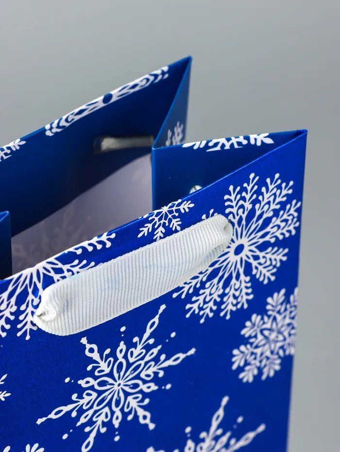 Пакет имеет яркий и красочный дизайн с новогодними мотивами, такими как снежинки, елки, Дед Мороз и другие символы Нового года. Это делает его идеальным выбором для использования в качестве подарочной упаковки на различные зимние праздники, такие как Новый год или Рождество.