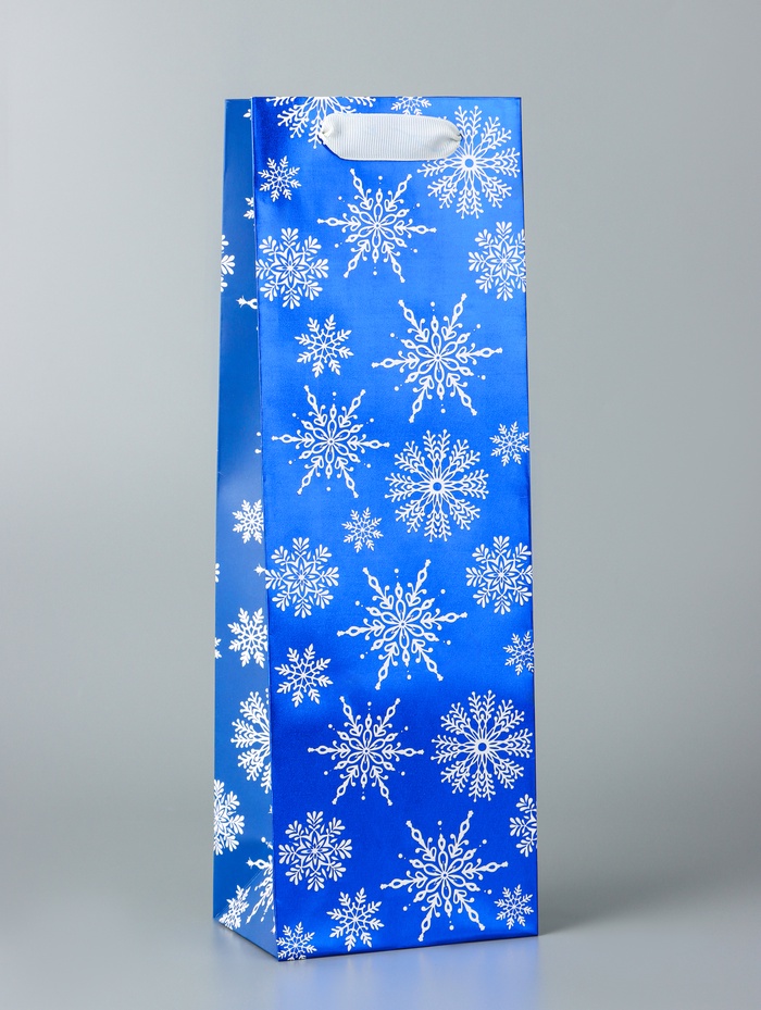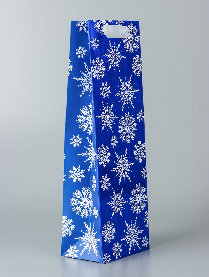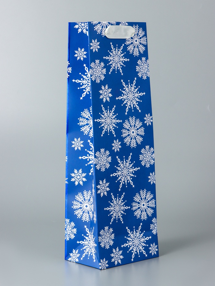 Пакет подарочный новогодний под бутылку, упаковка "Звёздочки-снежинки", 12 х 36 х 8,5 см. — Характеристики