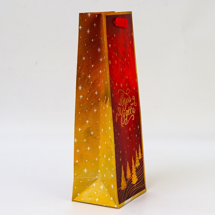 Пакет подарочный новогодний под бутылку «Верь в чудеса», 13×36×10 см — Характеристики