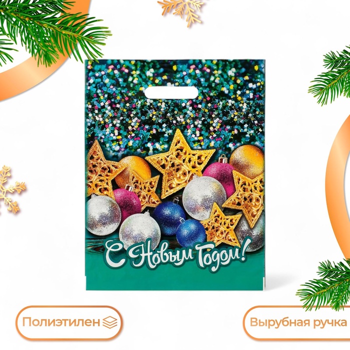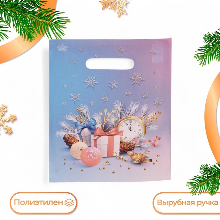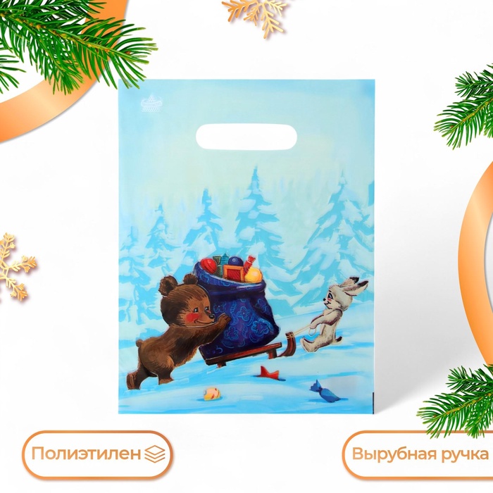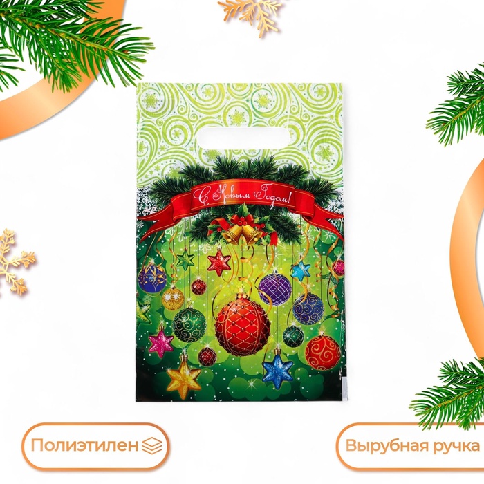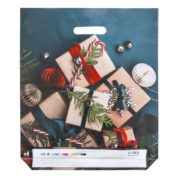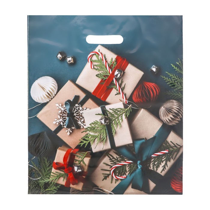 Пакет подарочный новогодний «Подарки на зеленом», глянец полиэтиленовый с вырубной ручкой, 38×45 см, 60 мкм — Характеристики