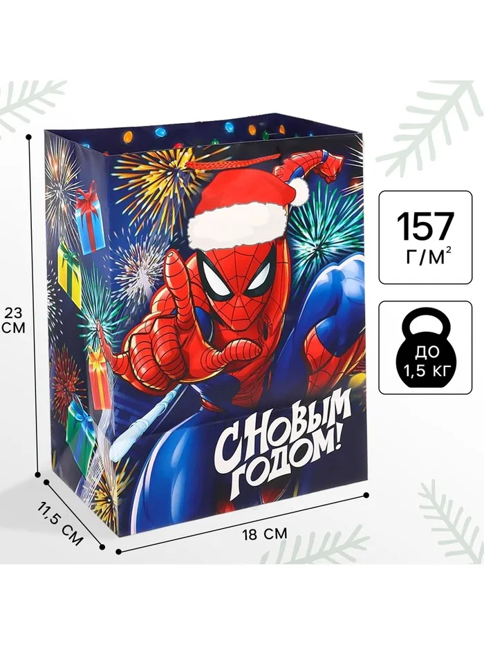 Пакет подарочный новогодний подарочный, 23 х 18 х 11.5 см, упаковка, Человек-паук — Характеристики