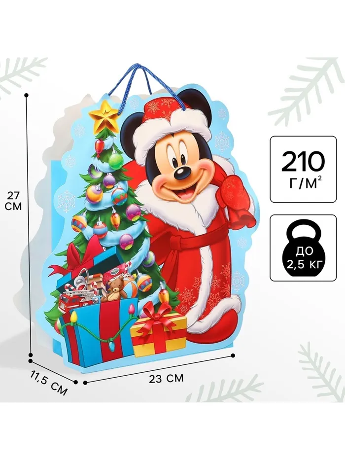 Пакет подарочный новогодний подарочный, 23 х 27 х 11.5 см, упаковка, Микки Маус — Характеристики