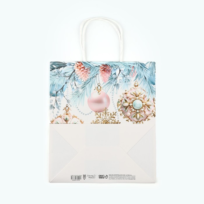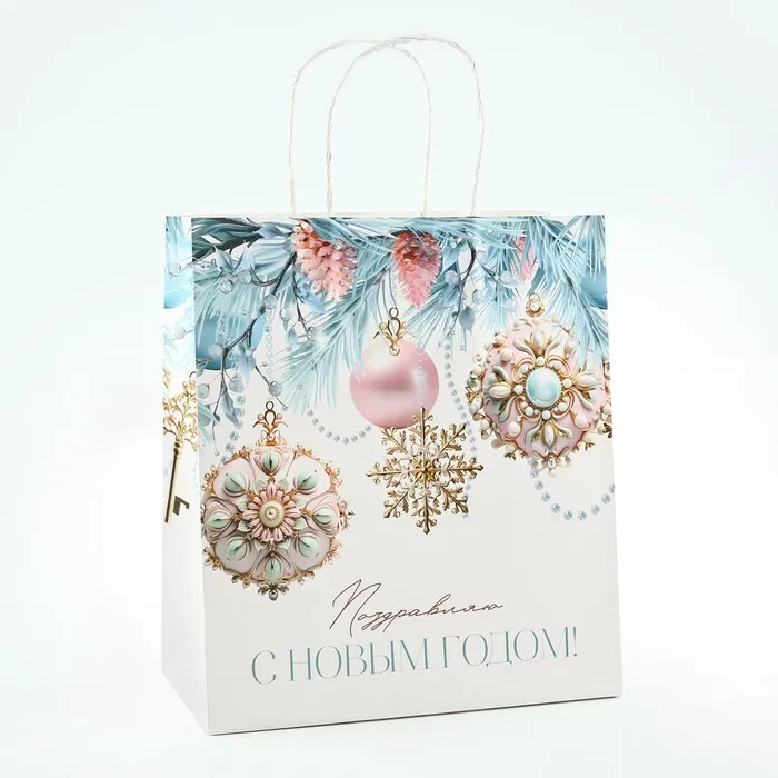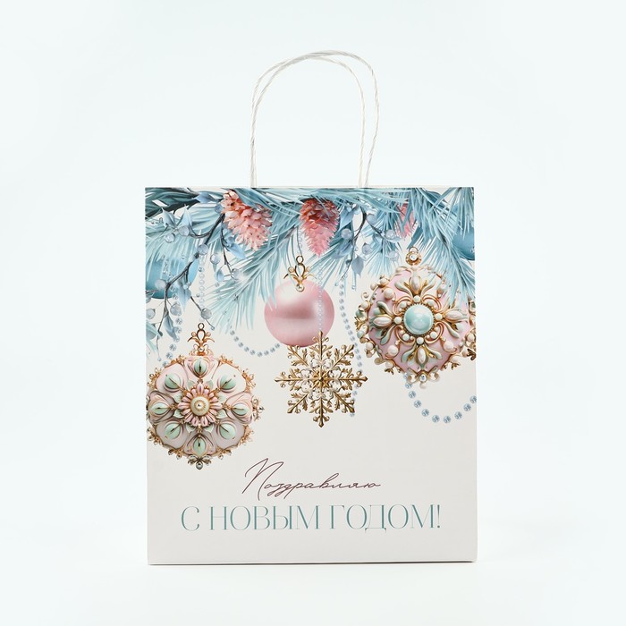Пакет подарочный новогодний «Поздравляю с Новым годом», белый крафт, 22 х 25 х 12 см — Характеристики