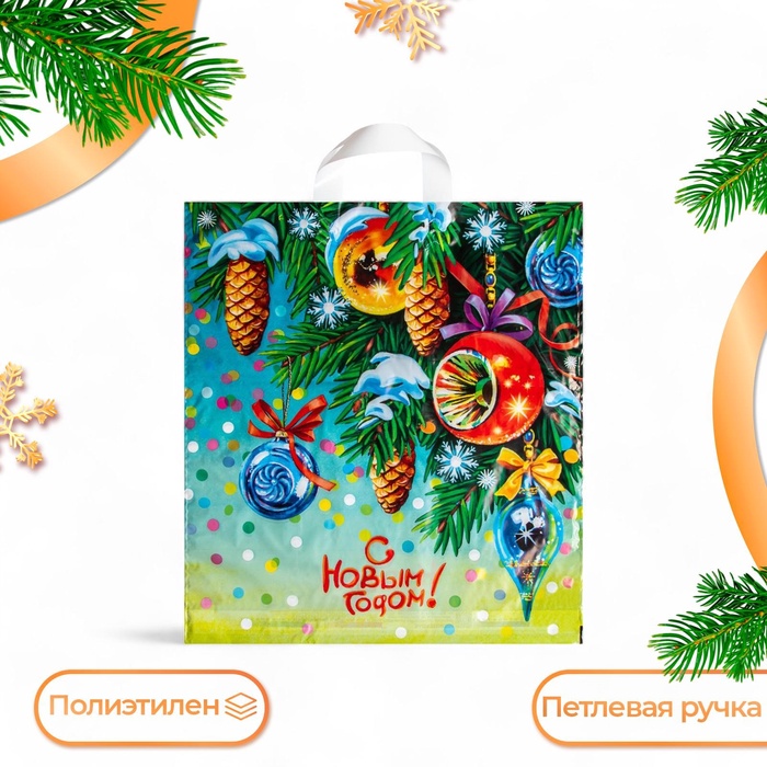 Пакет подарочный новогодний «Пробил час», полиэтиленовый с петлевой ручкой, 38×42 см — Характеристики