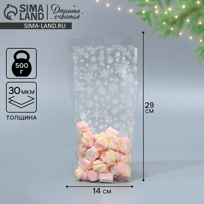 Пакет подарочный новогодний пропиленовый «Снежинки», 14 х 29 см — Характеристики