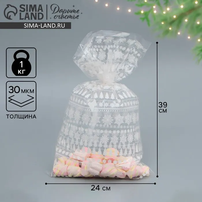 Пакет подарочный новогодний пропиленовый «Снежинки», 24 х 39 см — Характеристики