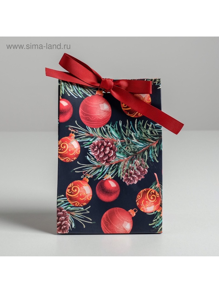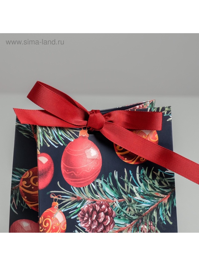 Пакет подарочный новогодний с лентой «Ёлочные игрушки», 13×19×9 см — Характеристики