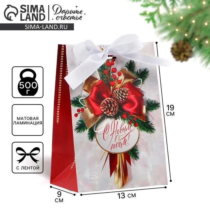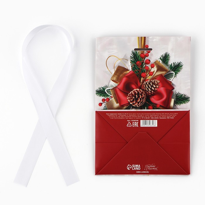 Пакет подарочный новогодний с лентой «Новый год», 13 х 19 х 9 см — Характеристики