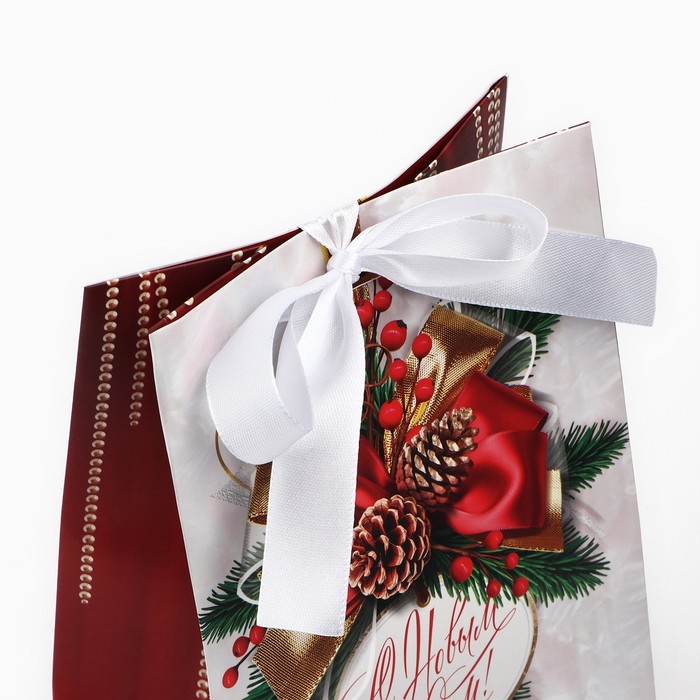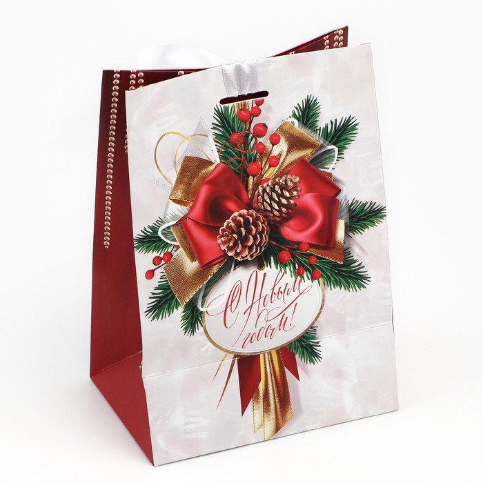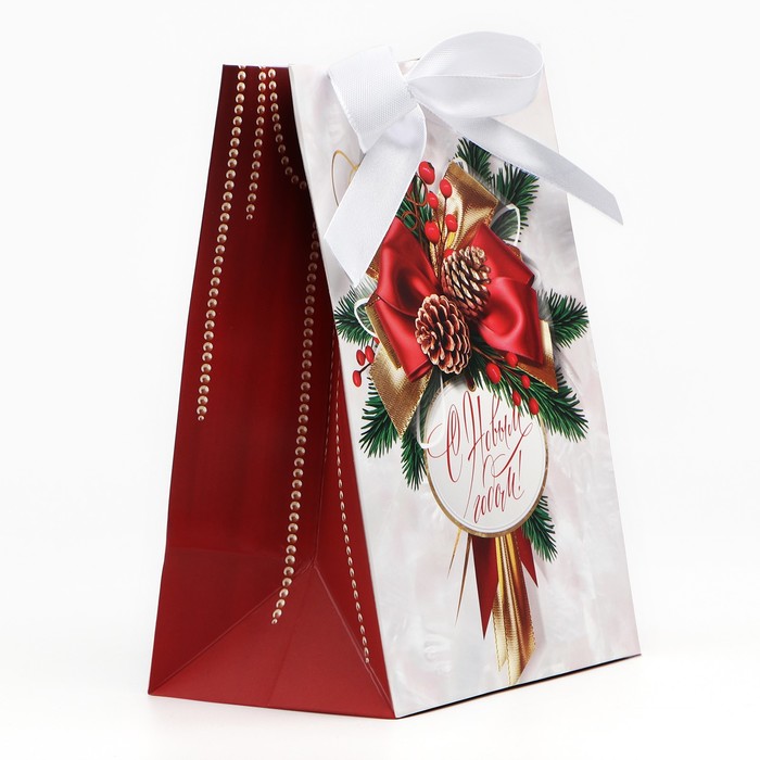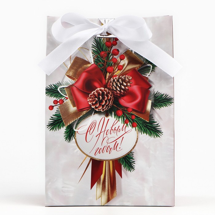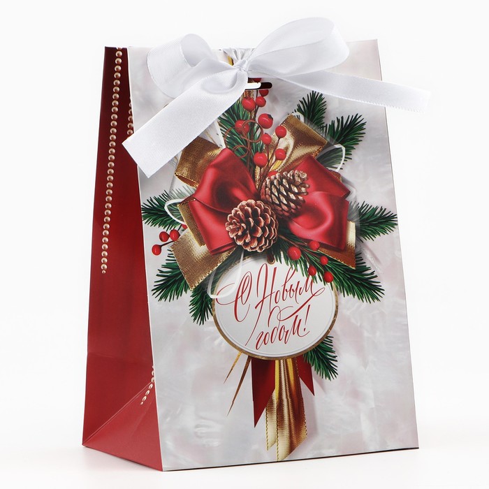 Пакет подарочный новогодний с лентой «Новый год», 13 х 19 х 9 см