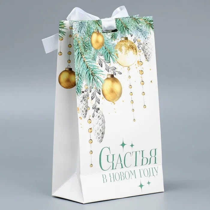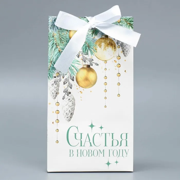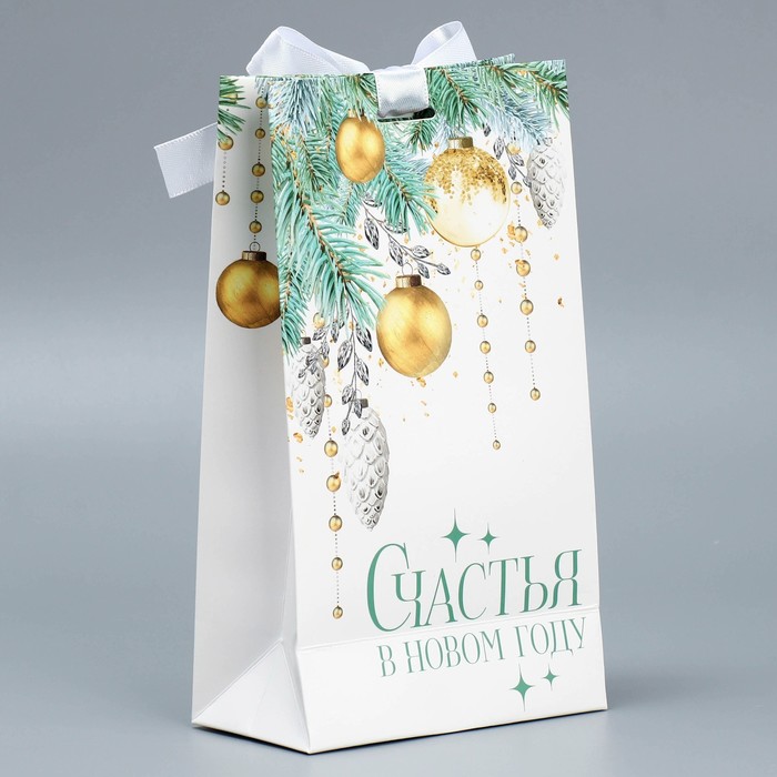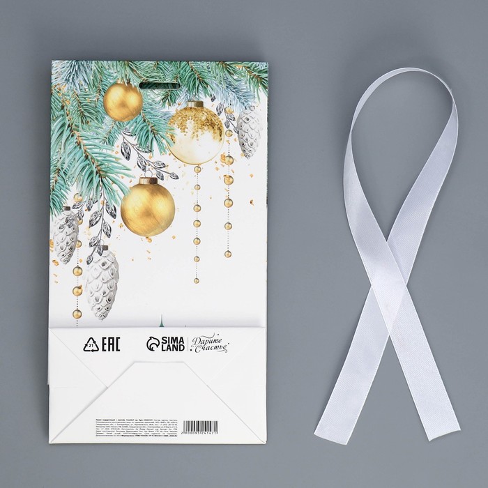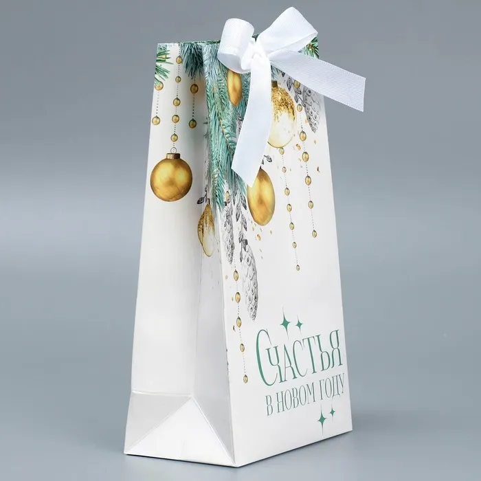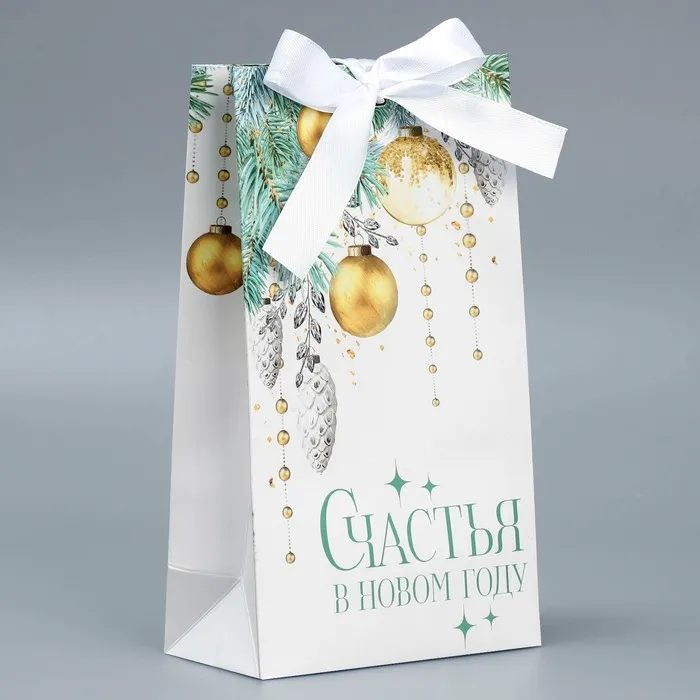 Пакет подарочный новогодний с лентой «Вьюга», 13 х 23 х 7 см — Характеристики