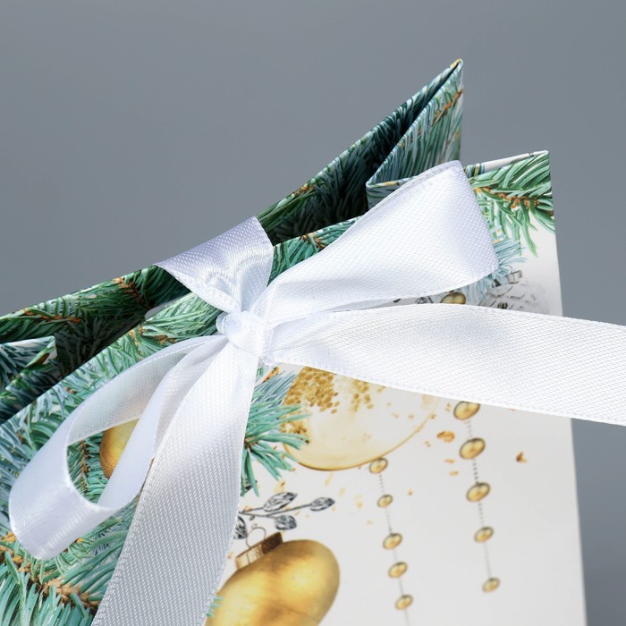 Пакет подарочный новогодний с лентой «Вьюга», 13 х 23 х 7 см