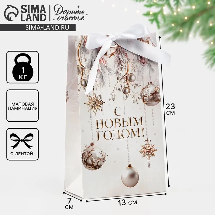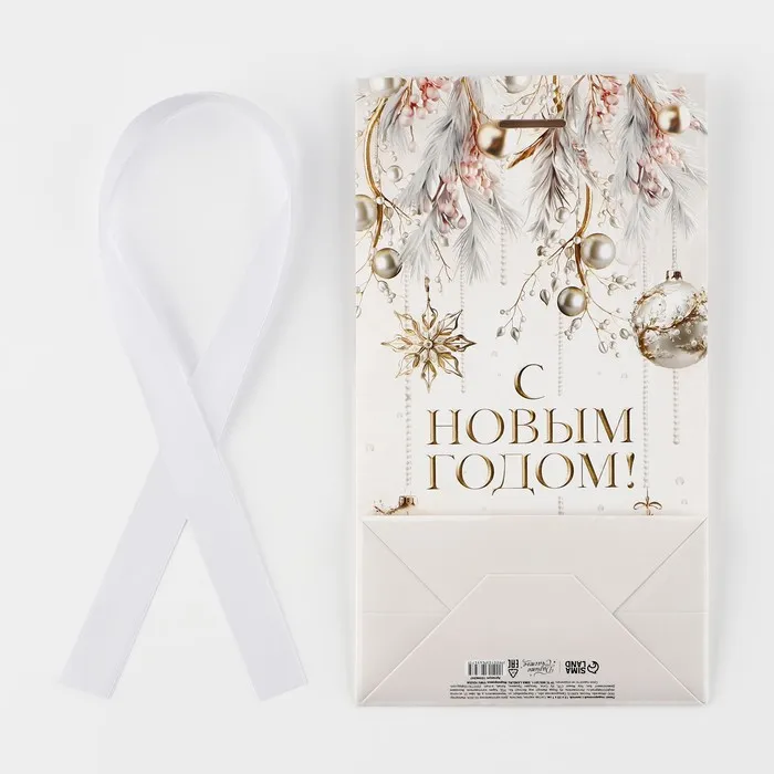 Пакет подарочный новогодний с лентой «Вошебный Новый год», 13 х 23 х 7 см — Характеристики