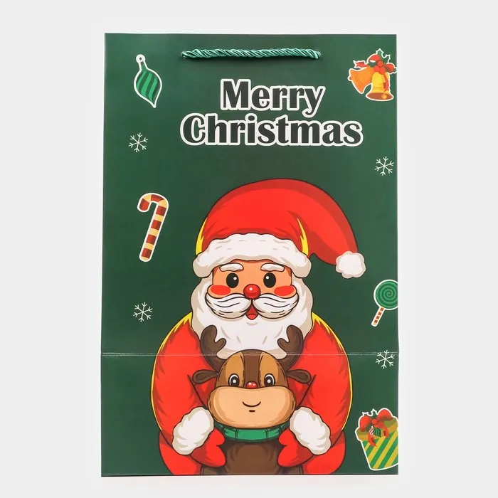 Яркий и красочный дизайн с новогодними мотивами придает пакету праздничный и жизнерадостный вид. Это делает его идеальным выбором для использования в качестве подарочной упаковки на различные зимние праздники, такие как Новый год или Рождество.