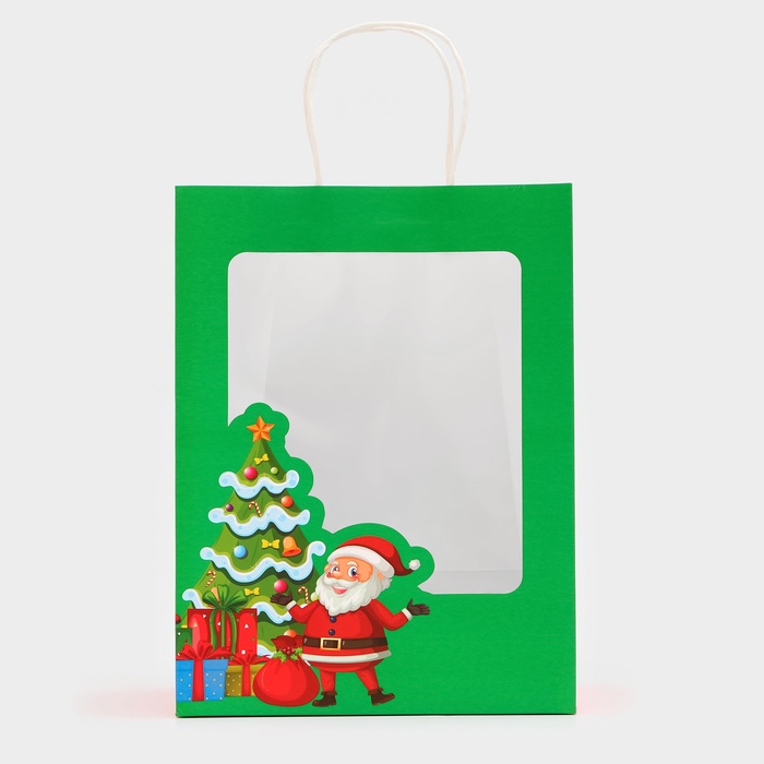 Пакет подарочный новогодний с окном «Дед Мороз» 30×22×14 см