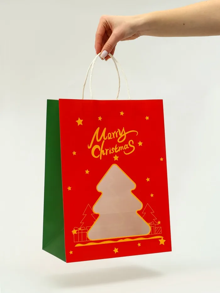 Пакет подарочный с окном новогодний имеет размеры 26 х 32 х 12 см — это идеальное решение для создания праздничной упаковки, которая не только надежно защитит ваш подарок, но и добавит ему особого шарма. Этот пакет был специально разработан для того, чтобы подчеркнуть важность момента и создать атмосферу новогоднего волшебства.