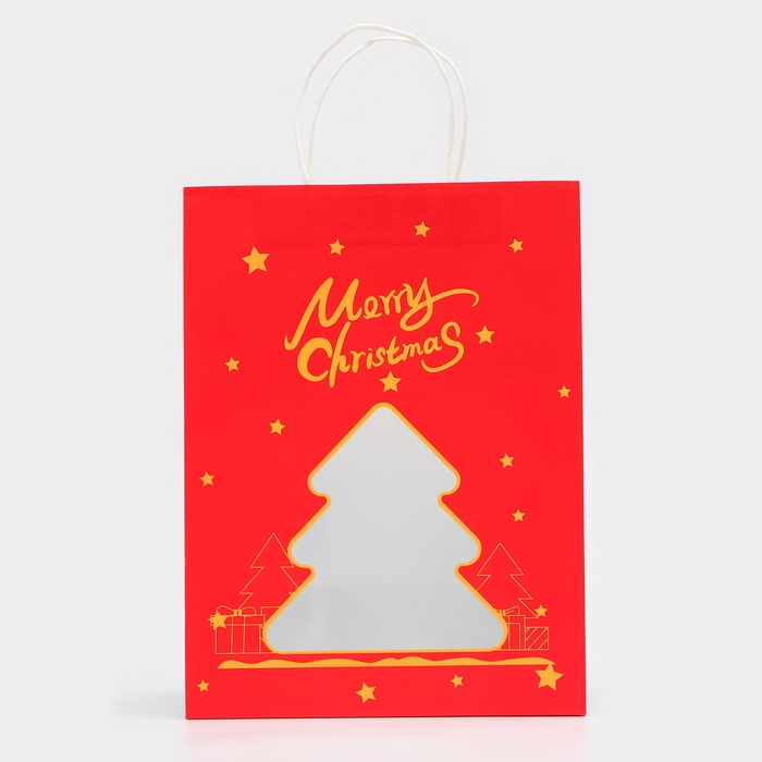 Пакет подарочный новогодний с окном «Ёлка» 26×35×16 см — Характеристики