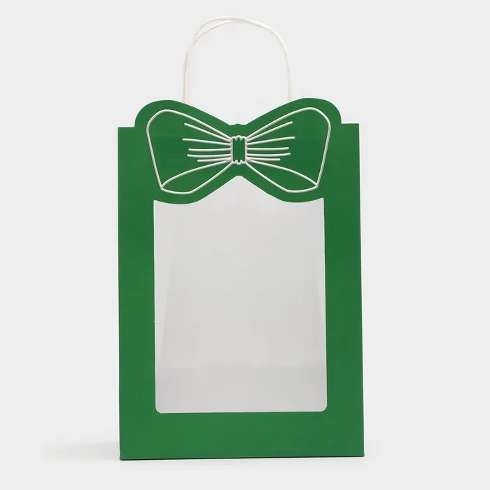 Подарочный пакет с окном "Бант" размером 30 х 22 х 14 см – это изысканное решение для эффектной упаковки вашего подарка.