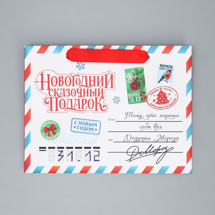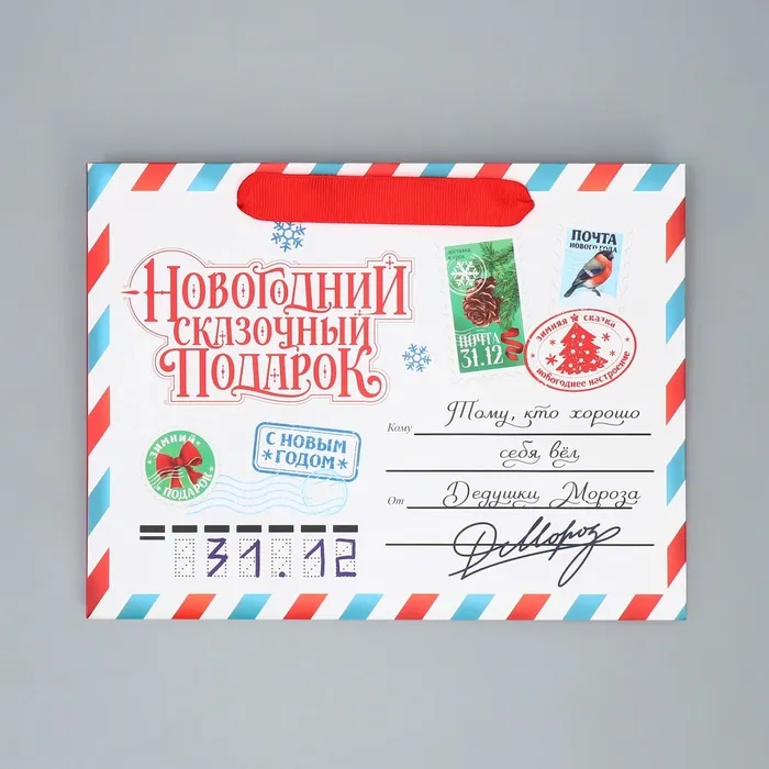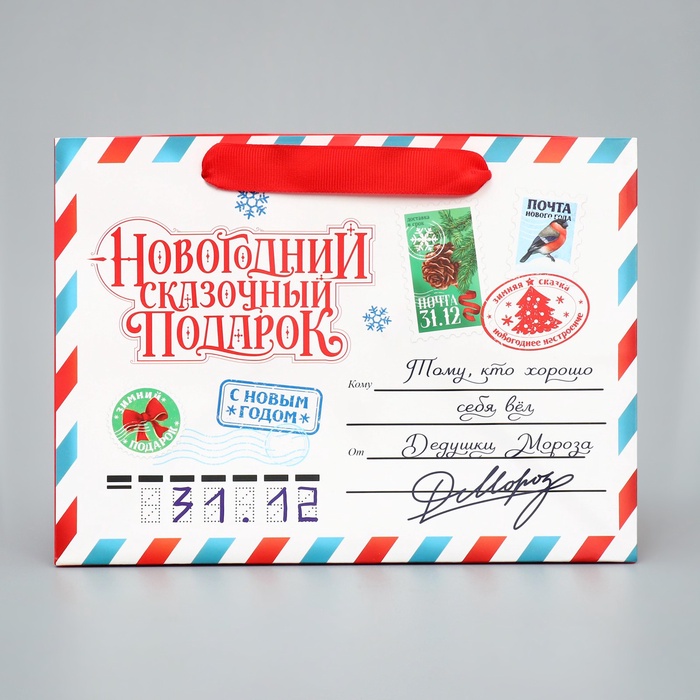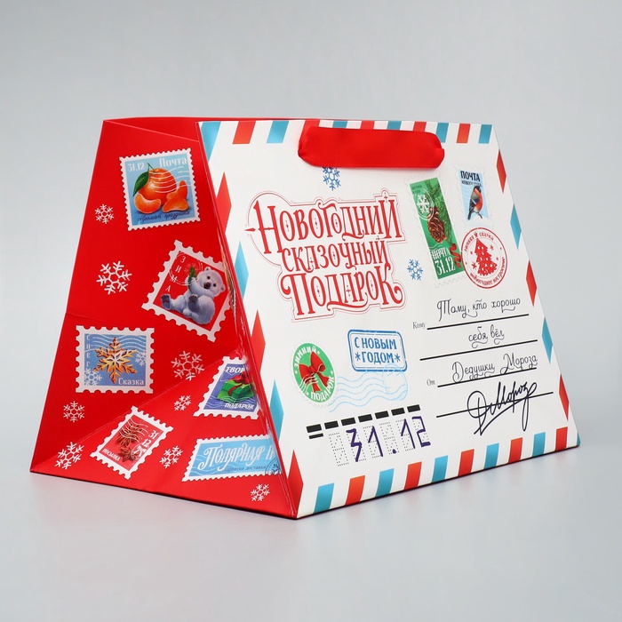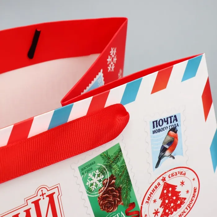 Пакет подарочный новогодний с широким дном «Новогодняя почта», 25 х 19 х 18 см — Характеристики