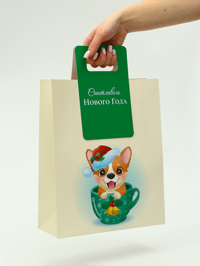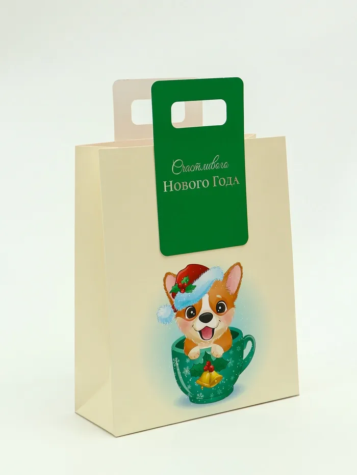 Пакет подарочный новогодний, с вырубной ручкой «Корги» 26×32×10 см — Характеристики