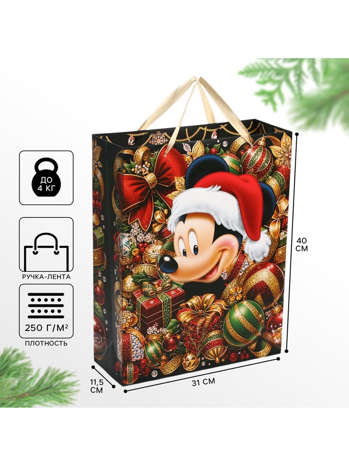 Подарочный пакет с вырубной ручкой, размером 26 х 32 х 10 см, с новогодним дизайном – это стильное и удобное решение для упаковки праздничных подарков.