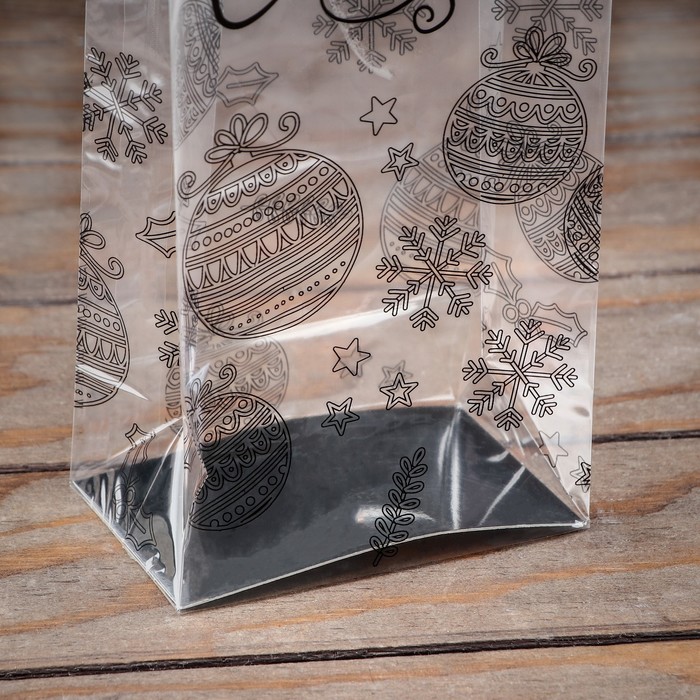 Пусть рождественский сюрприз начнётся с упаковки! Прозрачный новогодний пакет с жёстким дном станет идеальным решением для праздничного подарка. Элегантный и стильный, он подчеркнёт уникальность вашего подарка.