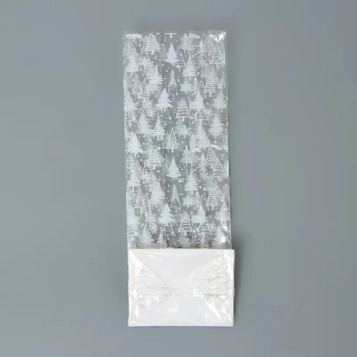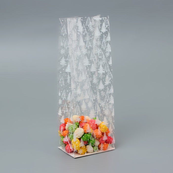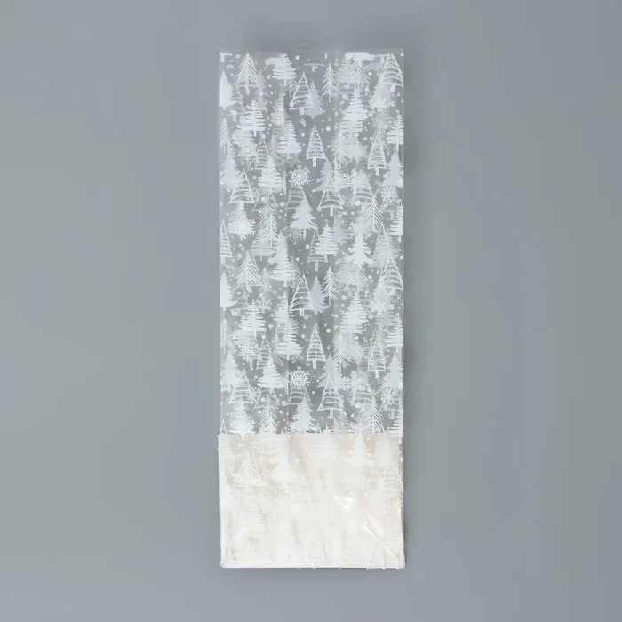 Пакет подарочный новогодний с жёстким дном, прозрачный с ёлками, 6×8×23 см — Характеристики