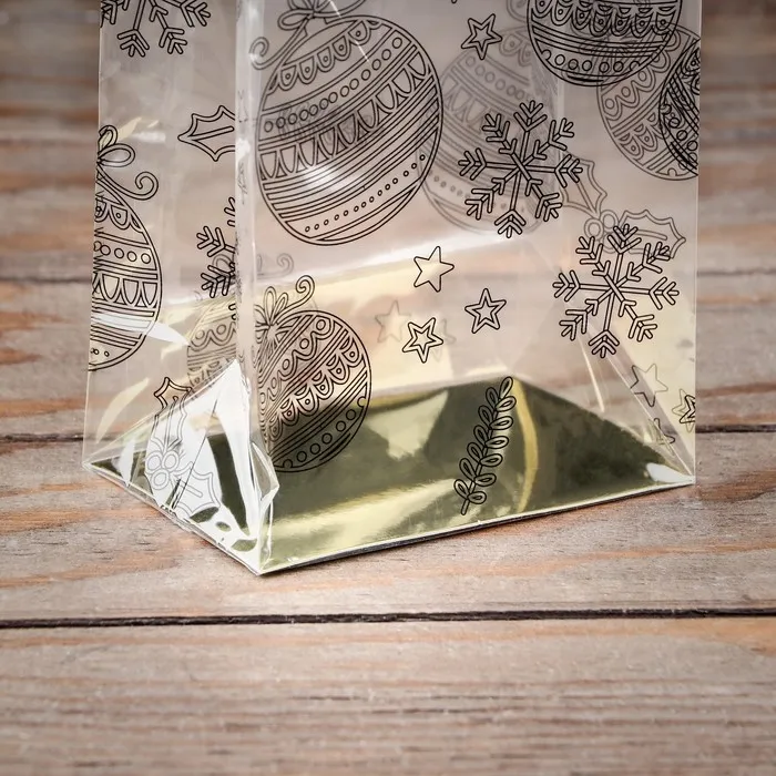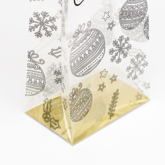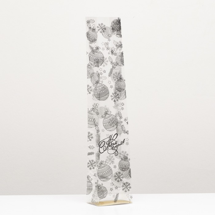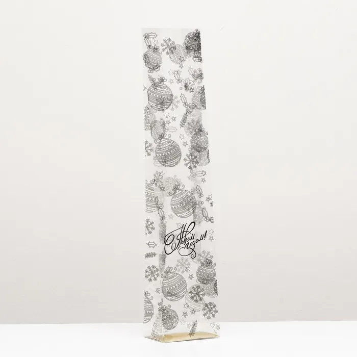 Пакет подарочный новогодний с жёстким дном, прозрачный с ёлочными шарами, 11×7×53 см — Характеристики