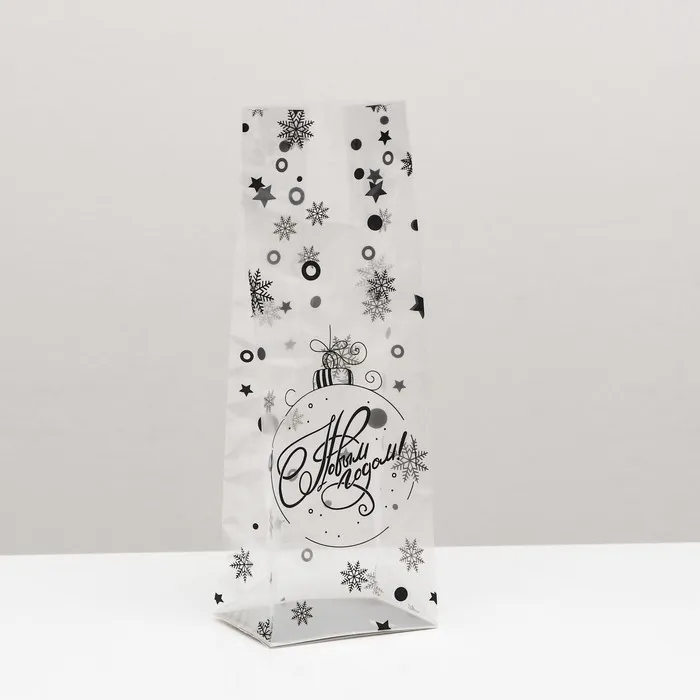 Пакет подарочный новогодний с жёстким дном, прозрачный со снежинками, 6×8×23 см — Характеристики