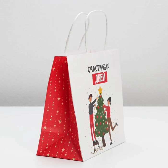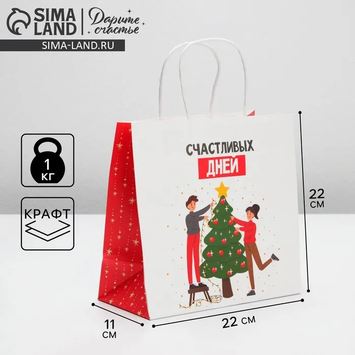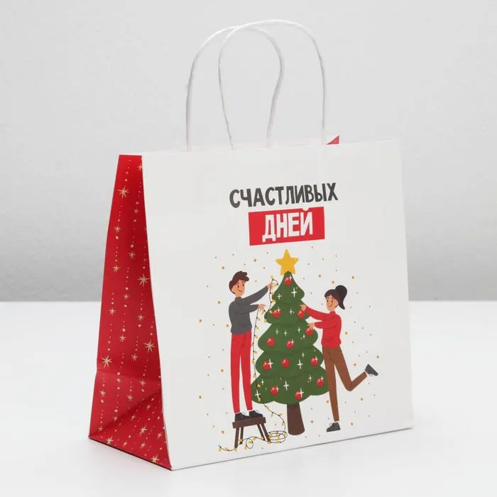 Пакет подарочный новогодний «Счастливых дней», 22 х 22 х 11 см — Характеристики