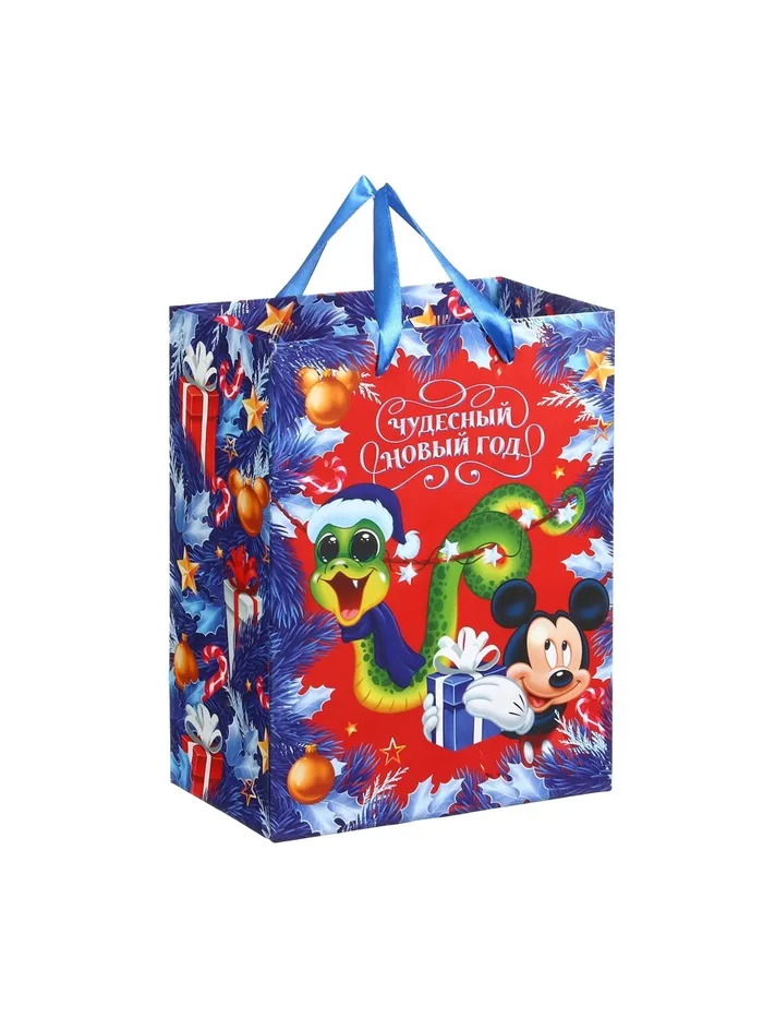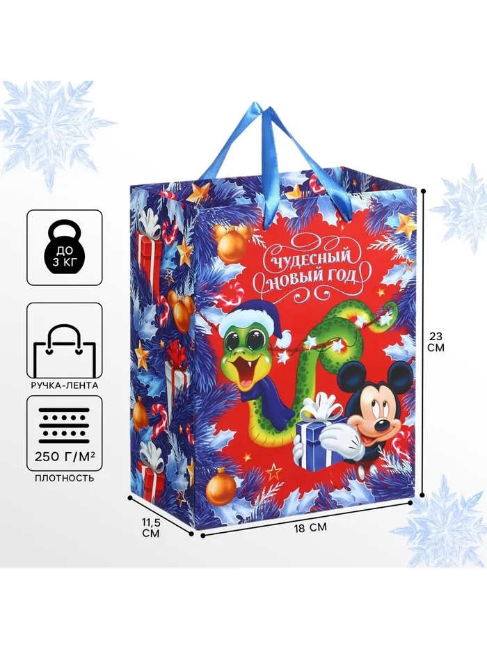 Пакет подарочный новогодний «Символ года 2025. Змея» 23 х 18 х 11.5 см, упаковка, Микки Маус — Характеристики