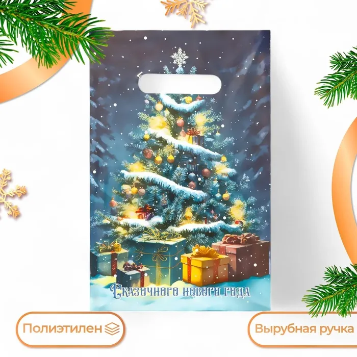 Пакет подарочный новогодний «Сказочного Нового Года», полиэтиленовый с вырубной ручкой, 20×30 см, 30 мкм — Характеристики