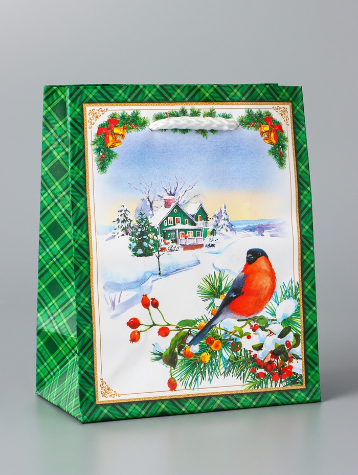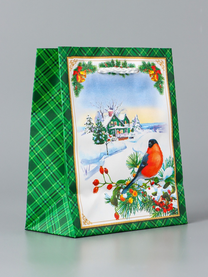Пакет подарочный новогодний «Снегирь на ветке», 11.5×14.5×6.5 см — Характеристики