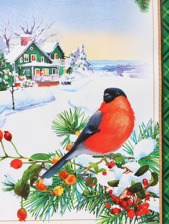 - Трогательный природный мотив: Изображение снегиря на заснеженной ветке передает атмосферу тихой зимней сказки. Такой дизайн подходит для подарков ценителям природы и сдержанной эстетики.
