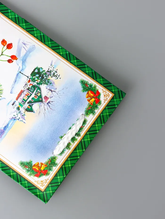 Естественность и гармония: Этот пакет говорит о внимании к деталям и тонком вкусе. Он создает настроение зимнего уюта и становится идеальным обрамлением для подарков, которые дарят с особым чувством.