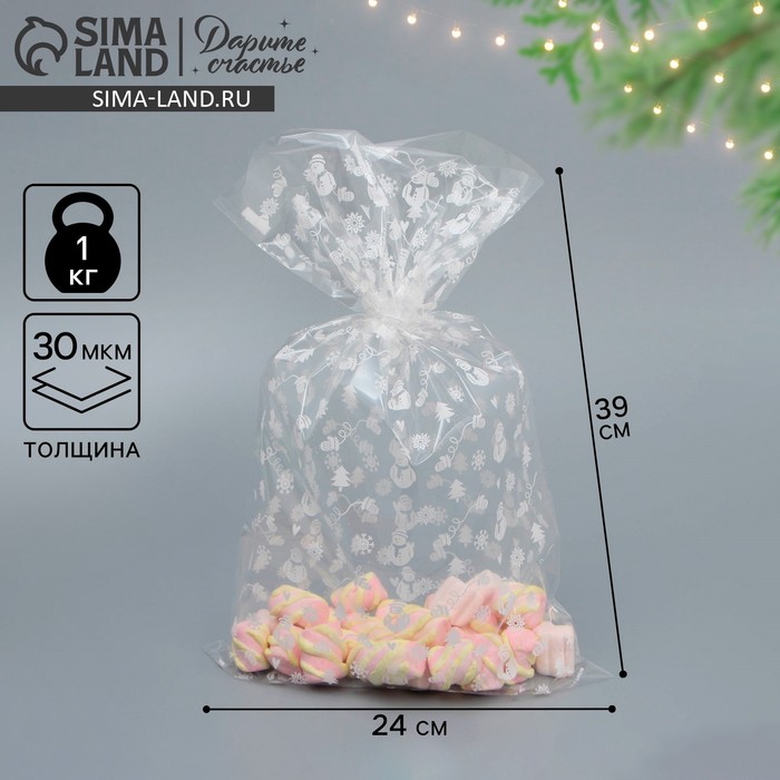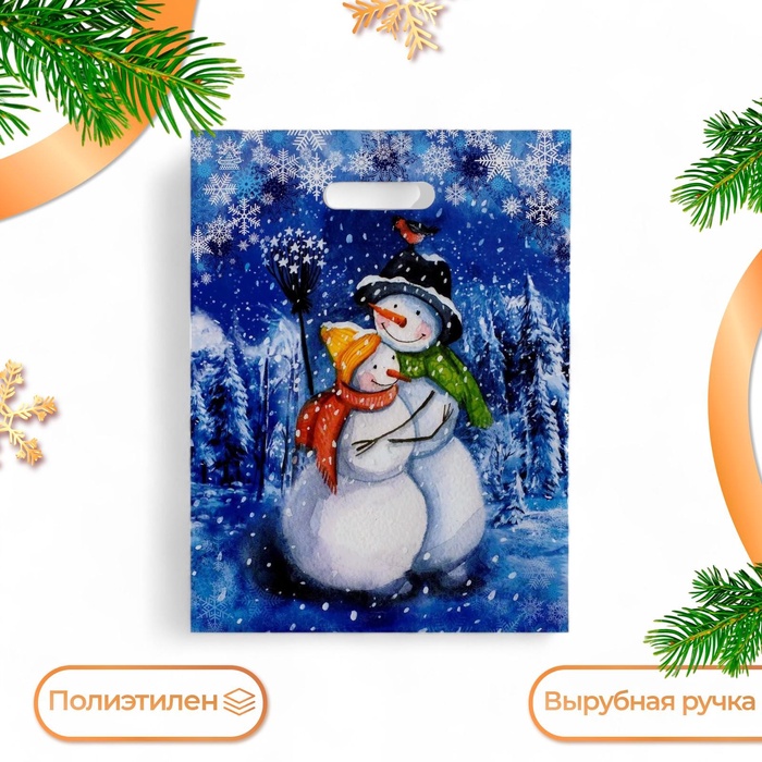 Пакет подарочный новогодний «Снегопад», полиэтиленовый с вырубной ручкой, 20×30 см — Характеристики
