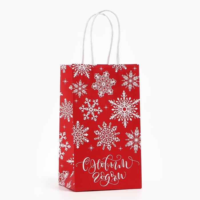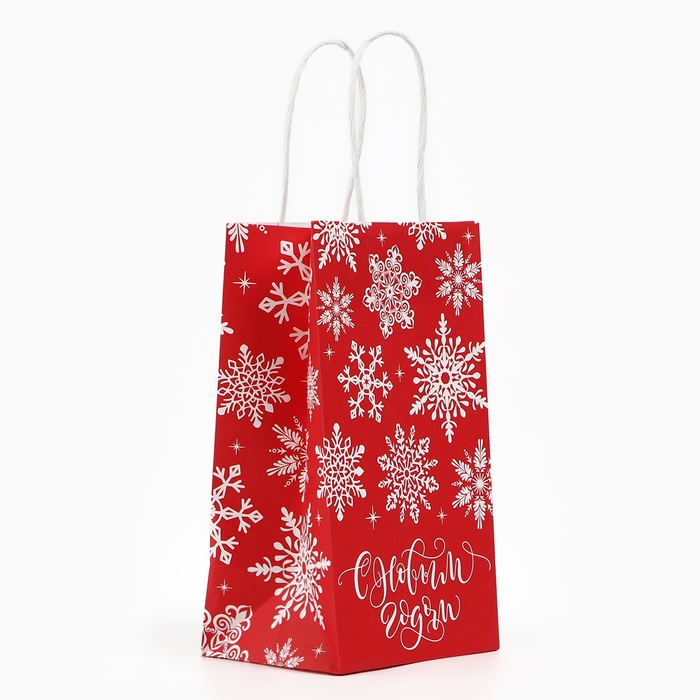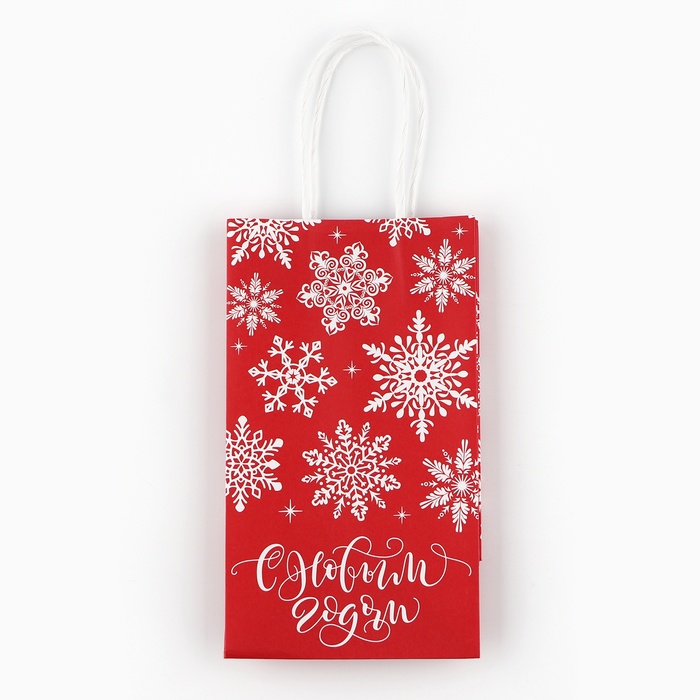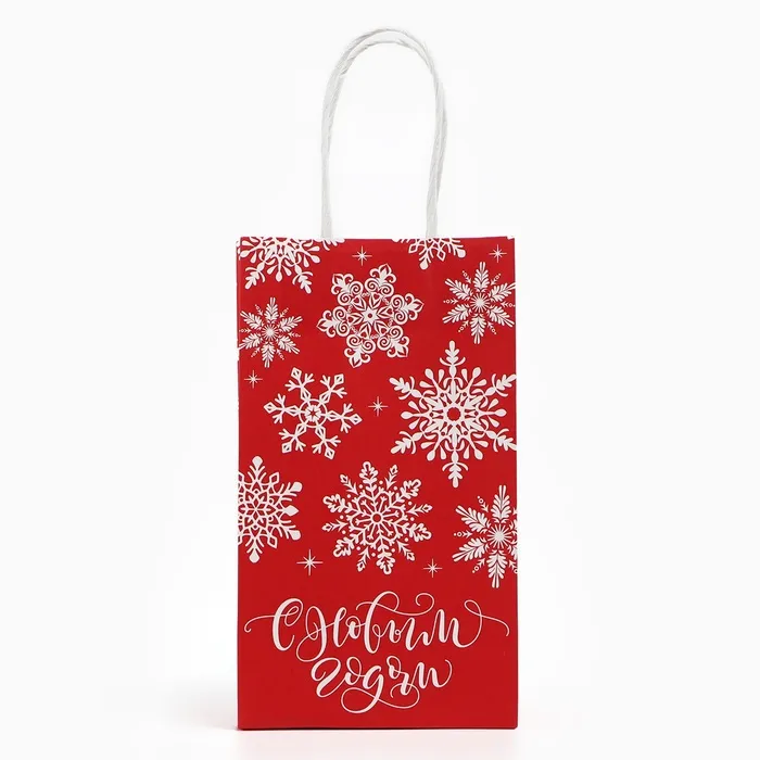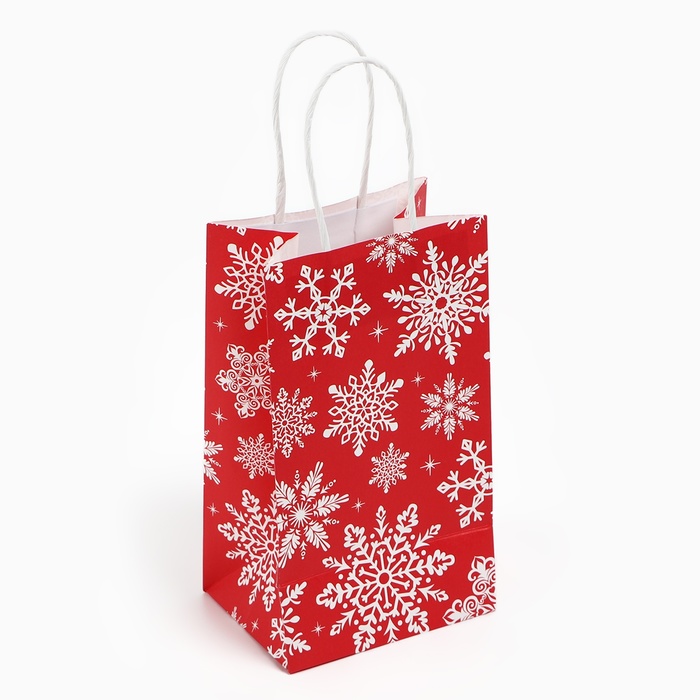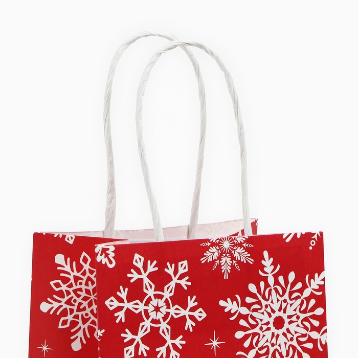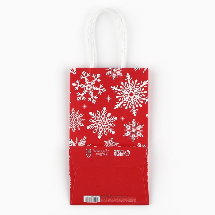 Пакет подарочный новогодний «Снежинки», белый крафт, 12 х 21 х 9 см — Характеристики