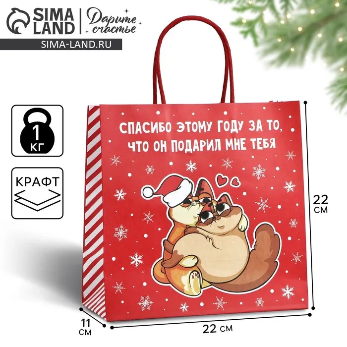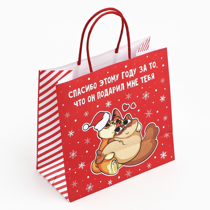Пакет подарочный новогодний «Спасибо этому году», 22 х 22 х 11 см — Характеристики