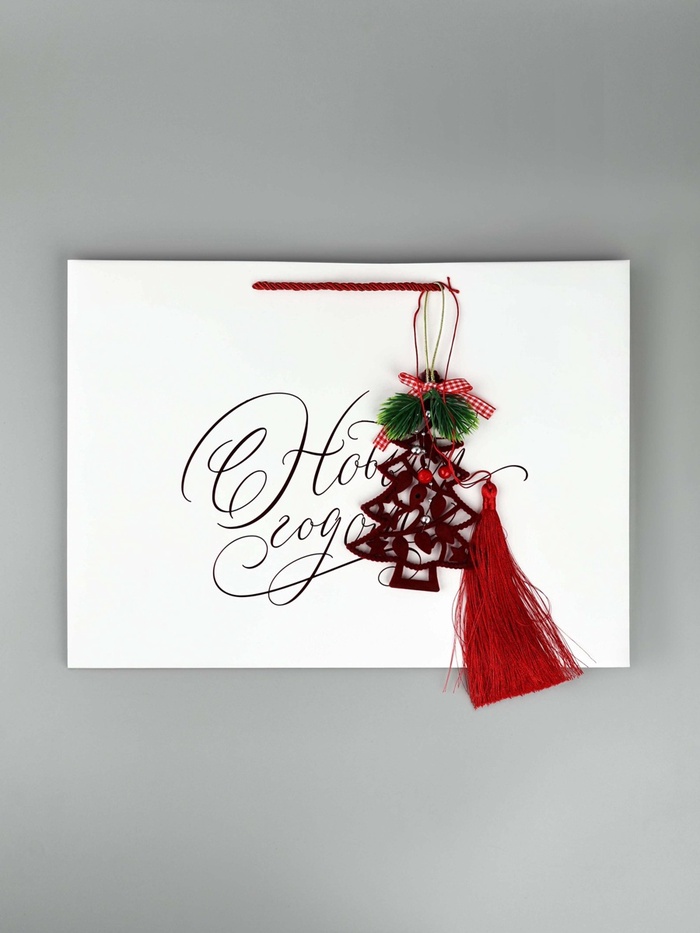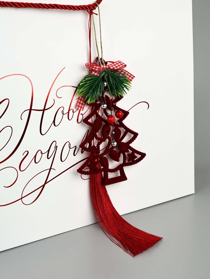 Пакет подарочный «Новогодний», тиснение, с ёлочной игрушкой и бахромой, 40×31×11 см — Характеристики