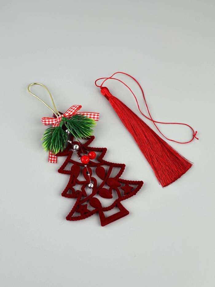 Пакет подарочный «Новогодний», тиснение, с ёлочной игрушкой и бахромой, 40×31×11 см