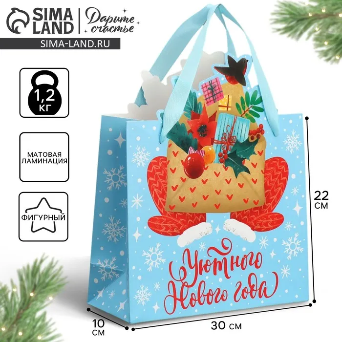 Пакет подарочный новогодний «Уютного Нового Года», 25 х 30 х 10 см — Характеристики