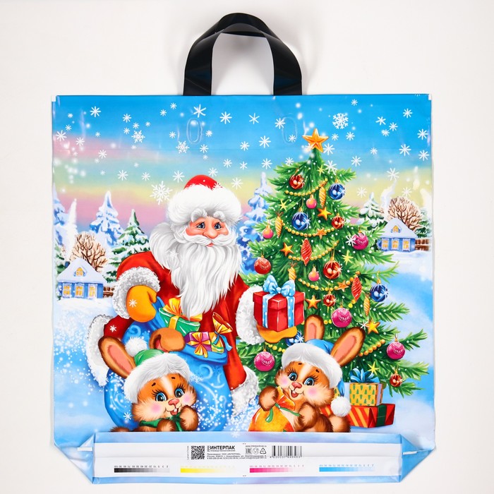 Пакет подарочный новогодний «В лесу», полиэтиленовый с петлевой ручкой, 44×44 см — Характеристики