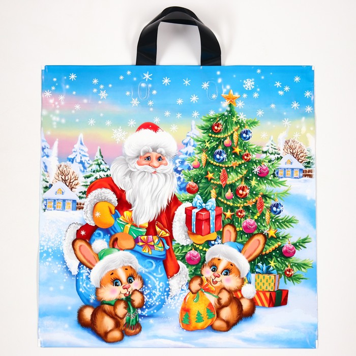Пакет подарочный новогодний «В лесу», полиэтиленовый с петлевой ручкой, 44×44 см — Характеристики