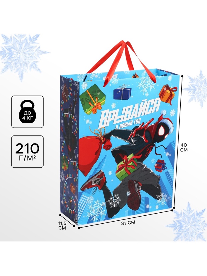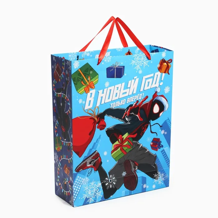 Пакет подарочный новогодний «Врывайся в Новый год!», 31×40×11.5 см, упаковка, Человек-паук — Характеристики